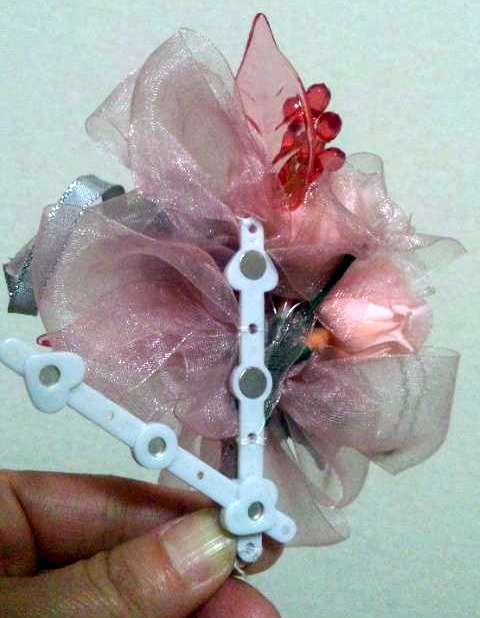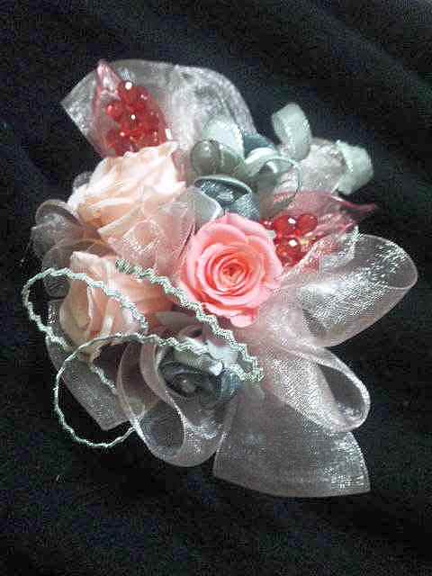 3月のレッスン コサージュ(クリアケ−ス付き)\3000 春先4月には、新しいスタート、お祝い、式など改まった機会、行事が多い月です。 お気に入りのひとつを作ってドレスアップのアイテムにしたり心を込めたプレゼントにしたりして楽しんでみませんか? ☆留め方 厚地のジャケットにもしっかり留まります。