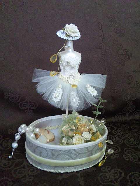 5月のレッスン ☆バレリーナステージ バレリーナにレースオーナメント、小さなバラなどをあしらい、クラッシックにアンティークに仕上げました。 色は二色。 ![]() ![]()