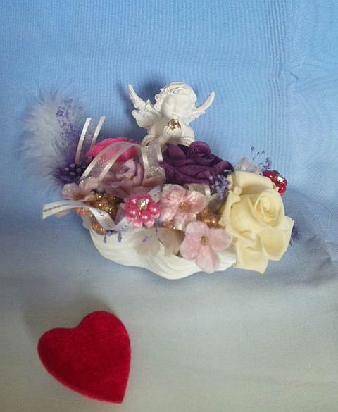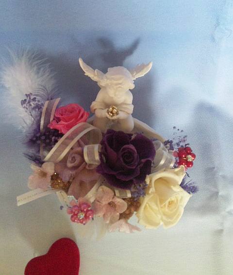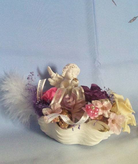 1月のレッスン エンジェル・作品サイズ15×10×9 優しいエンジェルが手に美しいボールを持ち、貴女にどうぞ… 癒し、優しさ、愛、素直さ、強さ…… 穏やかな作品でスタートしましょう。