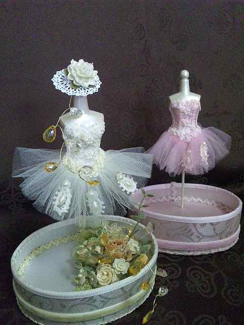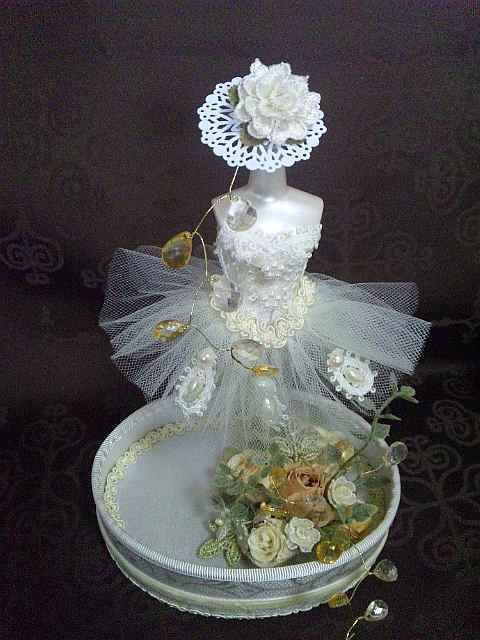 5月のレッスン ☆バレリーナステージ バレリーナにレースオーナメント、小さなバラなどをあしらい、クラッシックにアンティークに仕上げました。 色は二色。 ![]() ![]()